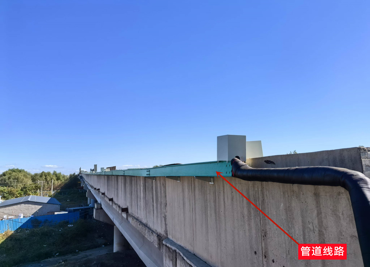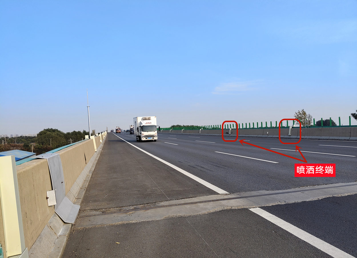 后丁香大橋(下行)位于沈陽(yáng)繞城高速K8+794公里處(中心樁號(hào)),建成于2013年,橋梁全長(zhǎng)2830.81m;橋面凈寬為18.75m。冬季橋面易結(jié)冰,且事故多發(fā)。為確保冬季高速公路的安全運(yùn)營(yíng),保障出行安全,“橋面凝冰預(yù)警及自動(dòng)化處置系統(tǒng)”于2024年10月在后丁香大橋(大連方向、下行)安裝應(yīng)用。
