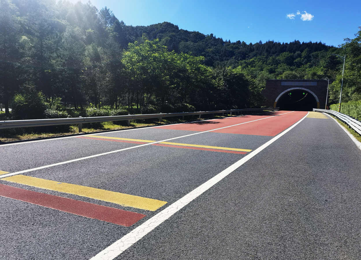 彩色聚氨酯抗滑耐磨薄層已在遼寧、吉林、黑龍江三省高速公路收費(fèi)站ETC車道、隧道進(jìn)出口、彎道橋以及景區(qū)步道等彩色路面鋪裝工程中推廣使用32.6萬平米。