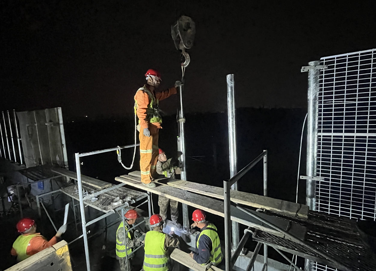 (二)耐久免維。采用新型免維護(hù)交安設(shè)施對(duì)現(xiàn)有鐵路橋、公路橋防落網(wǎng)、匝道插拔式活動(dòng)護(hù)欄、防眩板、橋梁矩形輪廓標(biāo)等進(jìn)行更換,大幅提高了交安設(shè)施的防腐耐久性能,降低了維修頻次,提升了道路安全,實(shí)現(xiàn)了耐久免維。值得一提的是,在繞城高速后丁香公鐵橋防落網(wǎng)更換施工中,鑒于該處工程的特殊性(須在短暫鐵路天窗時(shí)段夜間施工),同時(shí)施工區(qū)下方存有2.7萬(wàn)伏高壓接觸網(wǎng)線,且夜間施工期間溫度已近冰點(diǎn),橋面距地面高差近30m,面對(duì)時(shí)間緊、干擾多、難度大等多重困難,公司高度重視并統(tǒng)一部署,在確保安全生產(chǎn)基礎(chǔ)上,順利完成該施工項(xiàng)目。首次實(shí)現(xiàn)了夜間鐵路天窗時(shí)段封閉交通更換防落網(wǎng)施工,為高速公路重點(diǎn)路段跨鐵路橋梁夜間養(yǎng)護(hù)施工積累了寶貴經(jīng)驗(yàn)。