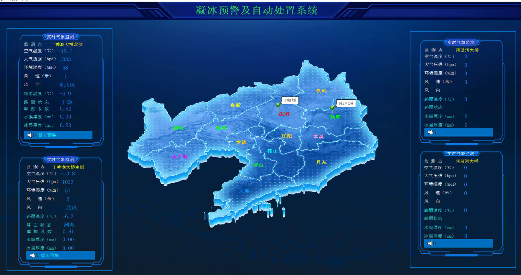 (2)精準(zhǔn)性:通過(guò)進(jìn)口智能傳感器,精準(zhǔn)監(jiān)測(cè)橋面水膜厚度、冰點(diǎn)等情況,全面消除暗冰,使道路安全暢通;